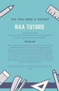 You can reach RAA Tutors through the contact information provided on our page. You can also access our location using Google Maps.